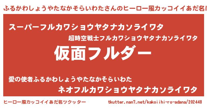 | 男性向けラノベタイトル風あだ名 | 『この素晴らしい世界にふるかわしょうやたなかそらいわたを!』 |