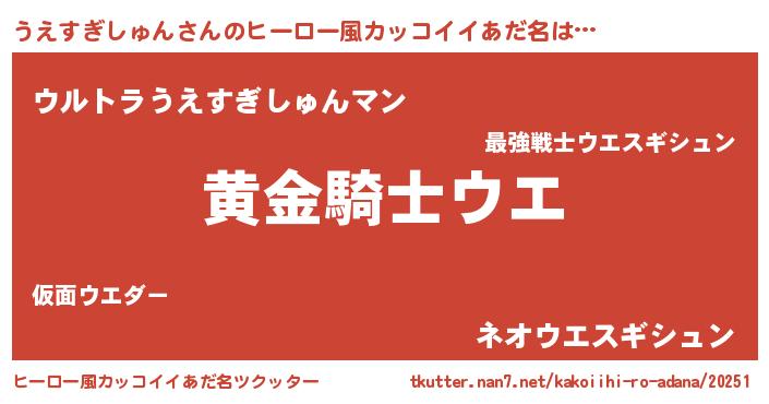 | 胡散臭い通販商品みたいなあだ名 | 『信頼と実績のペンダント…その名も「うえすぎしゅん」』 |