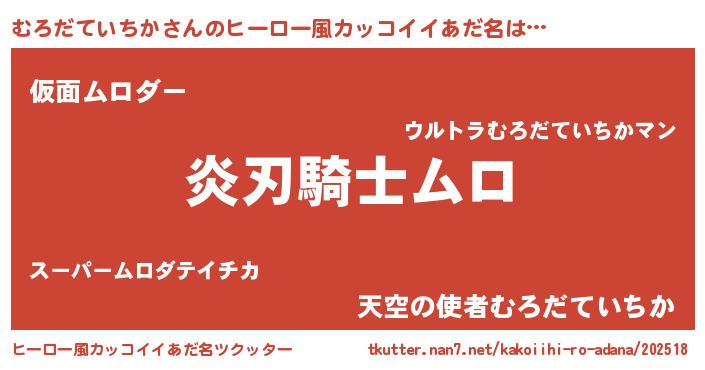 | 欧米人風あだ名 | 『ウサインむろだていちか』 |