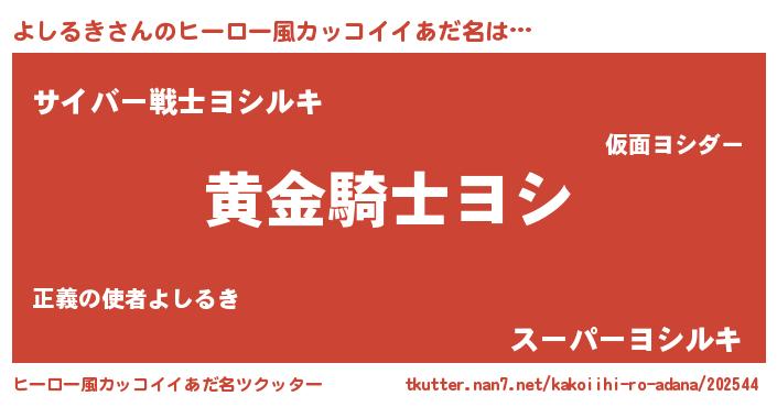 | ファンタジー風あだ名 | 『カークヨシラー』『ファントムヨシス』 |