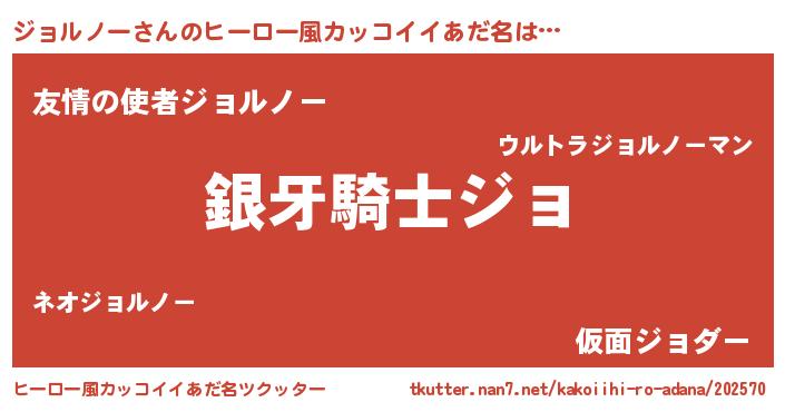 | 男性向けラノベタイトル風あだ名 | 『転生したらジョルノーだった件』 |