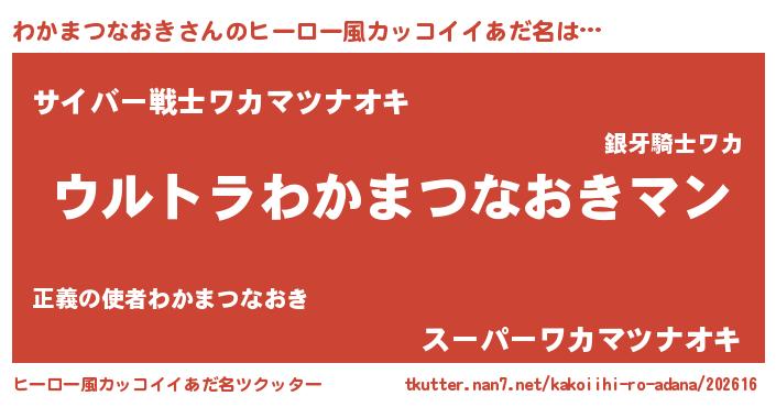 | ファンタジー風あだ名 | 『エターナルワカマツナオキー』 |