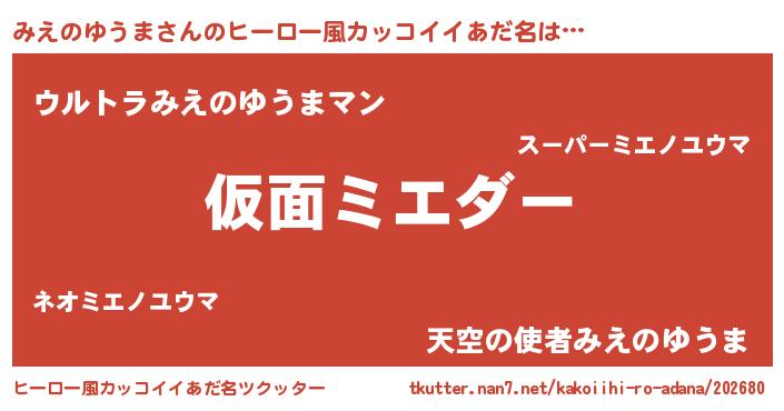 | 意味不明あだ名 | 『住所不定無職みえのゆうま(7歳)』 |