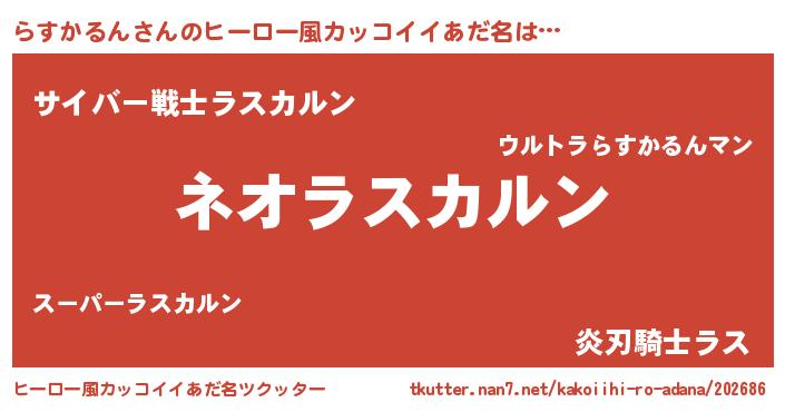 | 男性向けラノベタイトル風あだ名 | 『らすかるんという概念が存在しない退屈な世界 』 |