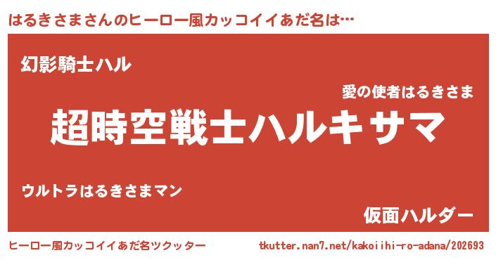 | 女子向けラノベタイトル風あだ名 | 『はるきさまなんてお断りですっ。』 |