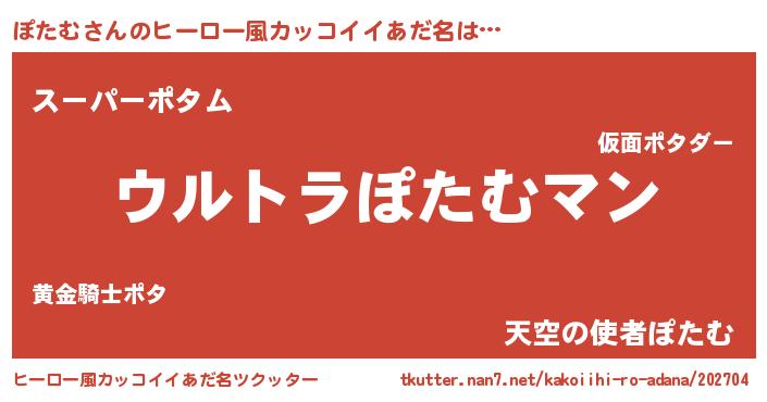 | 女子向けラノベタイトル風あだ名 | 『ぽたむ伯爵の花嫁』『死神ぽたむの再婚』 |