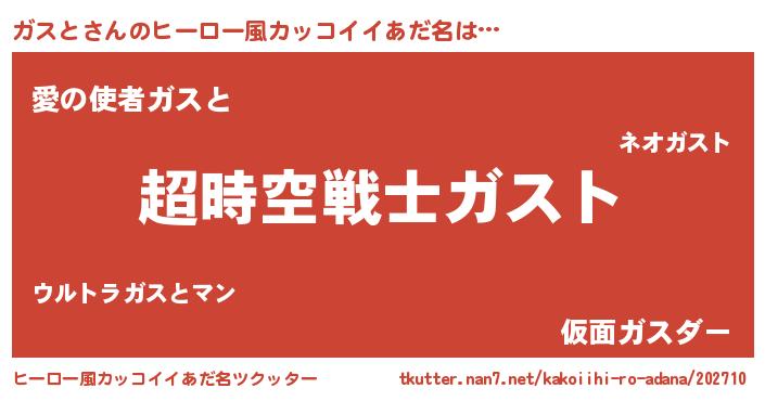 | 女子向けラノベタイトル風あだ名 | 『ガスとなんてお断りですっ。』 |