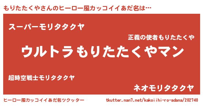 | 男性向けラノベタイトル風あだ名 | 『やはりもりたたくやの青春ラブコメはまちがっている 』 |