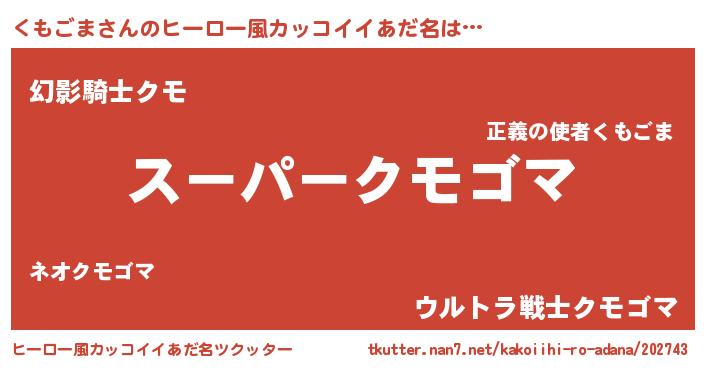 | 男性向けラノベタイトル風あだ名 | 『くもごまの憂鬱』 |