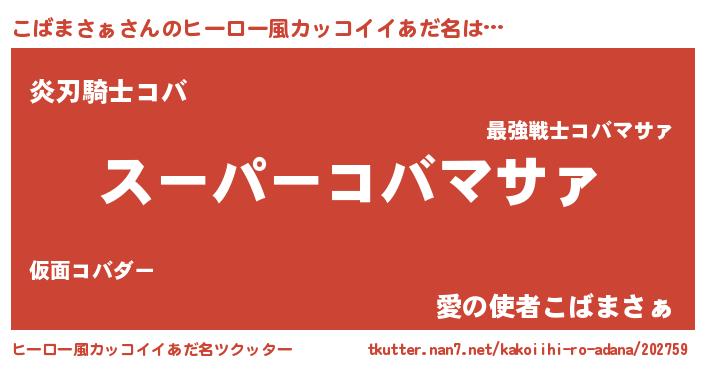 | 男性向けラノベタイトル風あだ名 | 『こばまさぁ~年齢イコール彼女いない歴の魔法使い~』 |