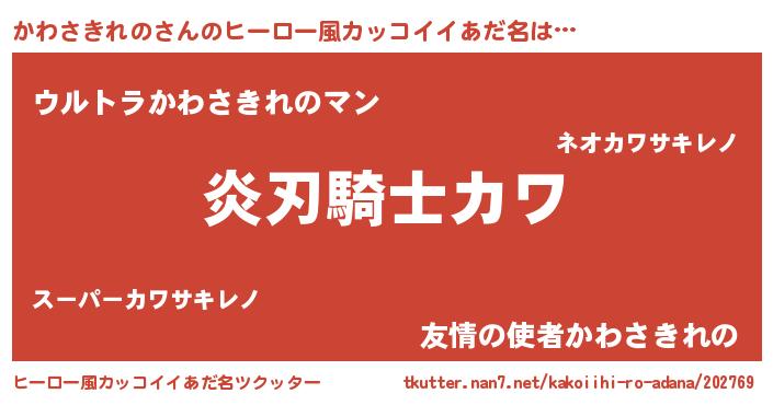 | ポケモン風あだ名 | 『カワキング』『ヒカワサキレノ』 |