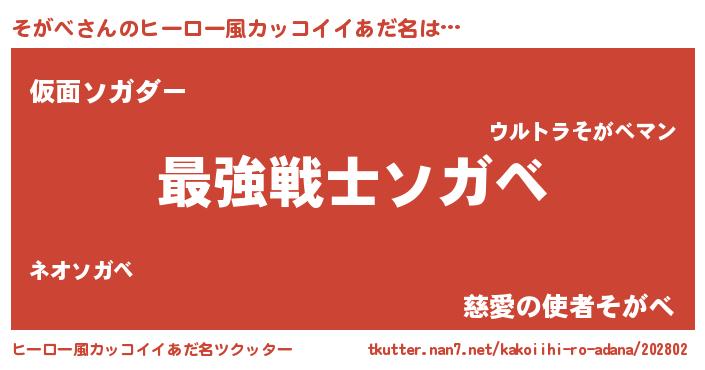 | 意味不明あだ名 | 『自称そがべ』『住所不定無職そがべ(89歳)』 |