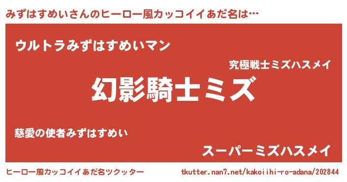 | 欧米人風あだ名 | 『みずはすめい・ステッグマイヤー』 |