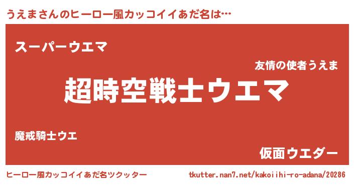 | 意味不明あだ名 | 『自称うえま』『ペロリンうえま』 |