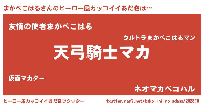 | ヘコむあだ名 | 『まかっぺ』『まかべこはる(小並感)』 |