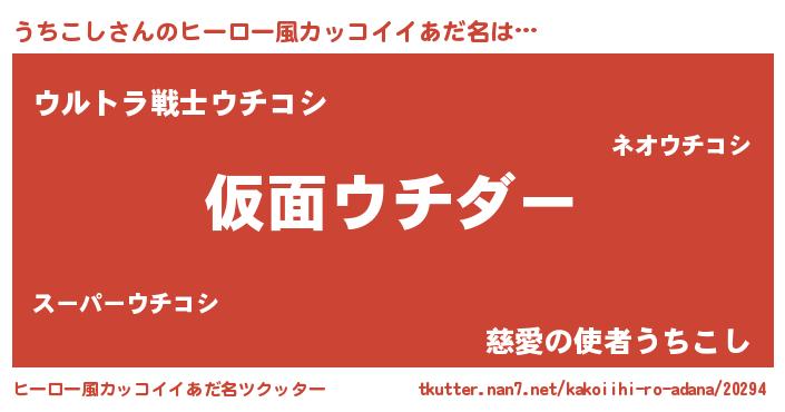 | 男性向けラノベタイトル風あだ名 | 『この素晴らしい世界にうちこしを!』 |