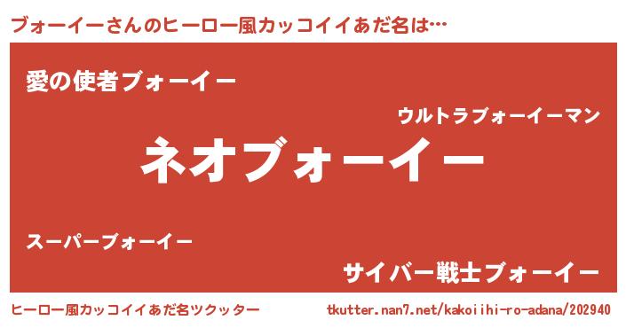 | 胡散臭い通販商品みたいなあだ名 | 『来世でも幸せになれる健康食品…その名も「ブォーイー」』 |