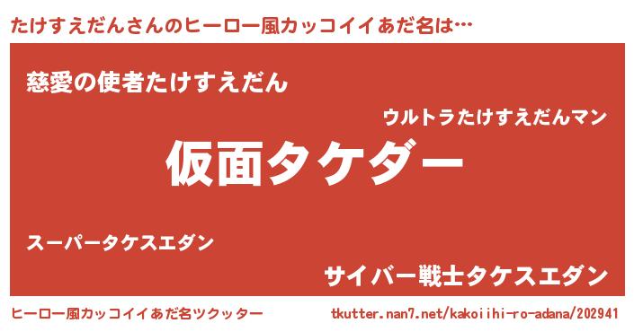 | 男性向けラノベタイトル風あだ名 | 『転生したらたけすえだんだった件』 |