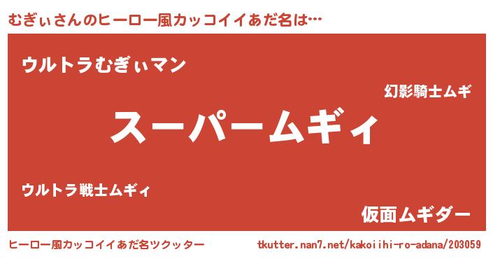 | 胡散臭い通販商品みたいなあだ名 | 『億万長者になれるブレスレット…その名も「むぎぃ」』 |