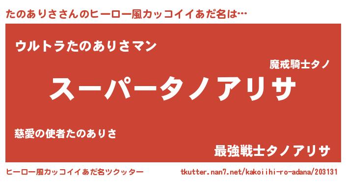 | ファンタジー風あだ名 | 『タノフェル』『エターナルタノアリサー』 |