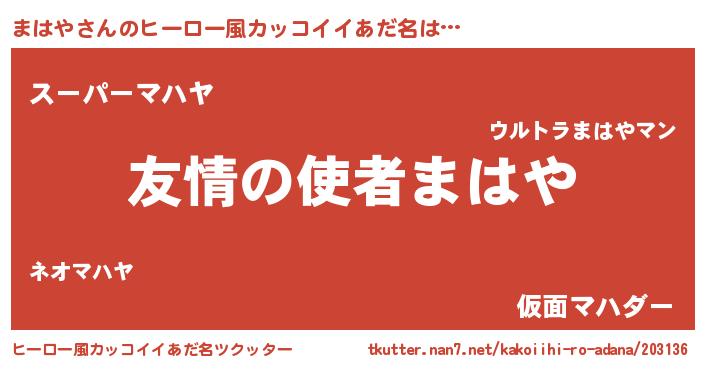 | 男性向けラノベタイトル風あだ名 | 『緋弾のマハヤ』『まはやの憂鬱』 |