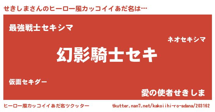 | 男性向けラノベタイトル風あだ名 | 『せきしまの嫁は女の子じゃないと思った?』 |