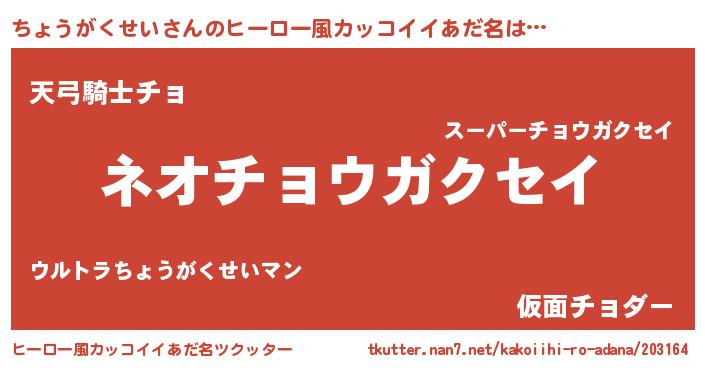 | ヘコむあだ名 | 『ちょうがくせい(爆)』『ちょ太郎』 |