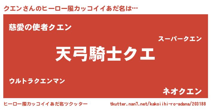 | 男性向けラノベタイトル風あだ名 | 『うちのクエンが世界を掌握している!』 |