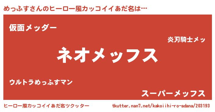 | ヘコむあだ名 | 『めっふす(爆)』『めっふぇ~』 |