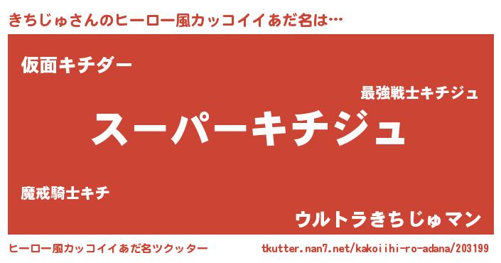 | 男性向けラノベタイトル風あだ名 | 『きちじゅに滅ぼされるだけの簡単なお仕事です』 |