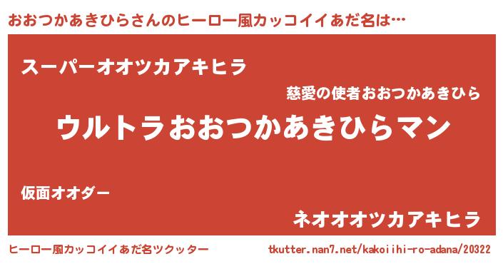 おおつかあきひらさんのヒーロー風カッコイイあだ名をツクッター!