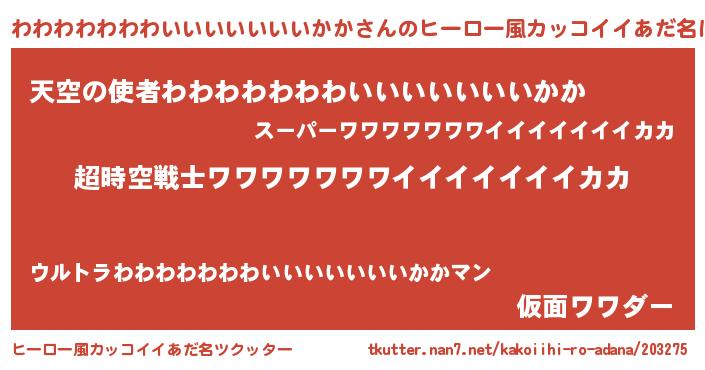 | 男性向けラノベタイトル風あだ名 | 『緋弾のワワワワワワワイイイイイイイカカ』 |