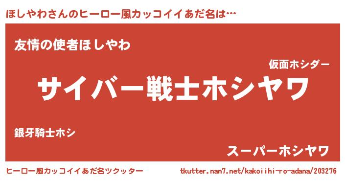 | 男性向けラノベタイトル風あだ名 | 『転生したらほしやわだった件』 |