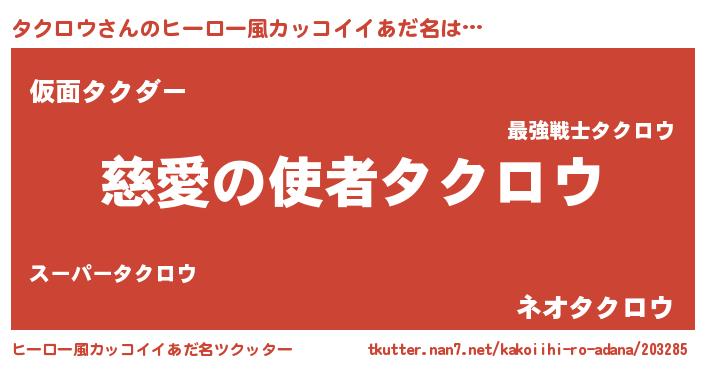 | ヘコむあだ名 | 『タクロウ(小並感)』『タクにー』 |