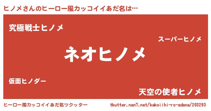 | 胡散臭い通販商品みたいなあだ名 | 『絶対に幸福をもたらす健康食品…その名も「ヒノメ」』 |