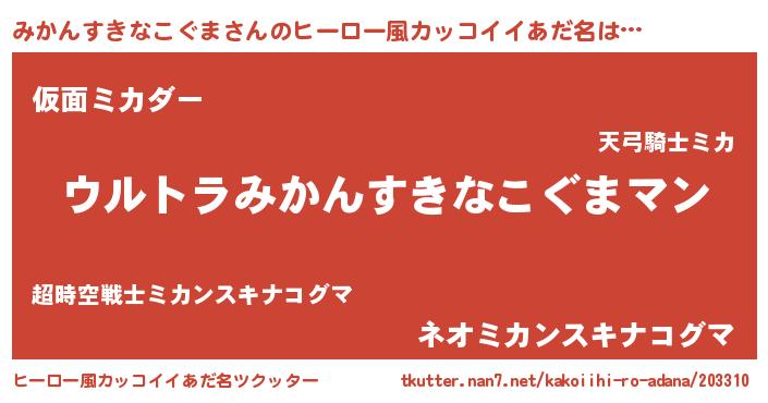 | ファンタジー風あだ名 | 『エターナルミカンスキナコグマー』 |