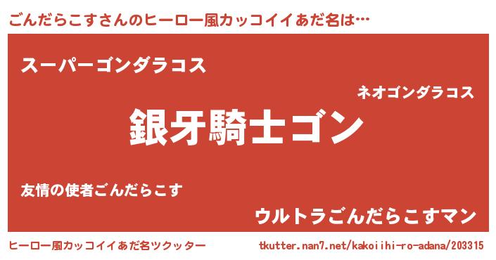 | ピコ太郎風あだ名 | 『ゴン十郎』『ゴコ史郎』『ピゴ四郎』 |