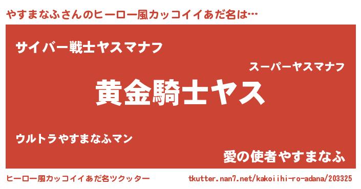 | 胡散臭い通販商品みたいなあだ名 | 『信頼と実績のネックレス…その名も「やすまなふ」』 |