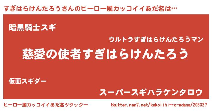 | ポケモン風あだ名 | 『スックウザ』『ヒスギハラケンタロウ』 |