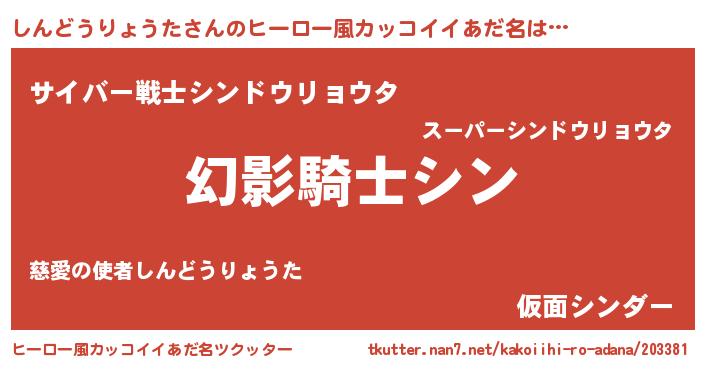 | 肩書あだ名 | 『しんどうりょうた中将』 |