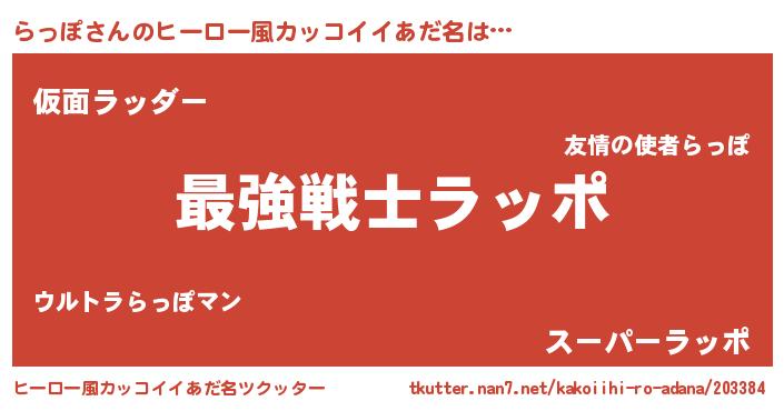 | 男性向けラノベタイトル風あだ名 | 『Re:らっぽから始める異世界生活』 |