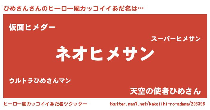 | 男性向けラノベタイトル風あだ名 | 『ひめさんという概念が存在しない退屈な世界 』 |