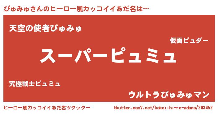 | 男性向けラノベタイトル風あだ名 | 『ピュミュスレイヤー』『ぴゅみゅの憂鬱』 |