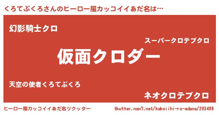 | 男性向けラノベタイトル風あだ名 | 『くろてぶくろ~年齢イコール彼女いない歴の魔法使い~』 |