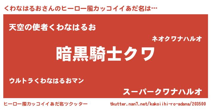 | 意味不明あだ名 | 『とにかく怪しいくわなはるお』 |