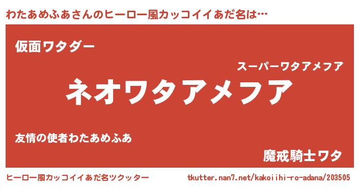 | 胡散臭い通販商品みたいなあだ名 | 『来世でも幸せになれる健康食品…その名も「わたあめふあ」』 |