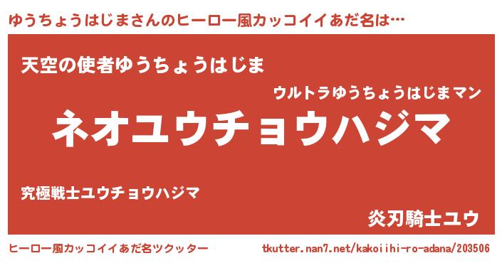 | ヘコむあだ名 | 『ゆうちょうはじま(笑)』『ゆうを』 |