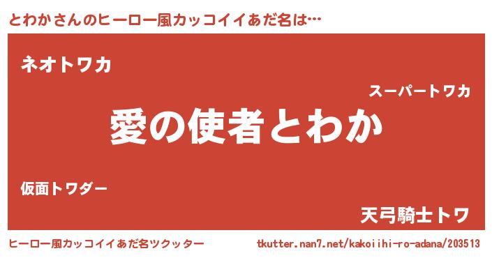 | ヘコむあだ名 | 『とわか(笑)』『とわ太郎』『つくし』 |