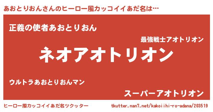 | 男性向けラノベタイトル風あだ名 | 『あおとりおんという概念が存在しない退屈な世界 』 |