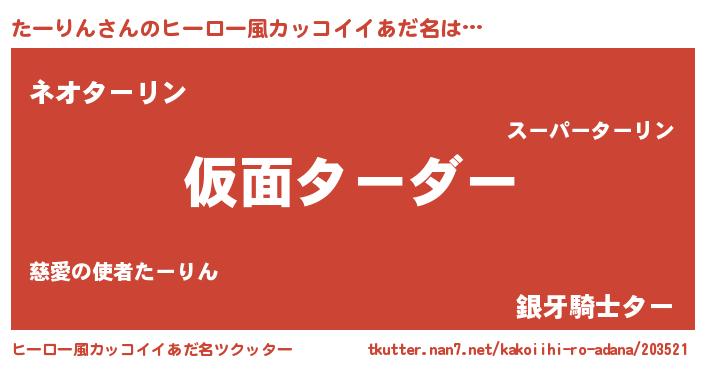 | ヘコむあだ名 | 『たーりん(小並感)』『たー太郎』 |